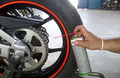 A corrente deve estar sempre bem lubrificada, nem muito frouxa, nem muito apertada, sempre na tensão adequada. Isso se aplica a coroa e o pinhão, chamados de transmissão secundária. Neste caso utiliza-se um spray lubrificante correto, caso contrário pode sujar qualquer roupa.
