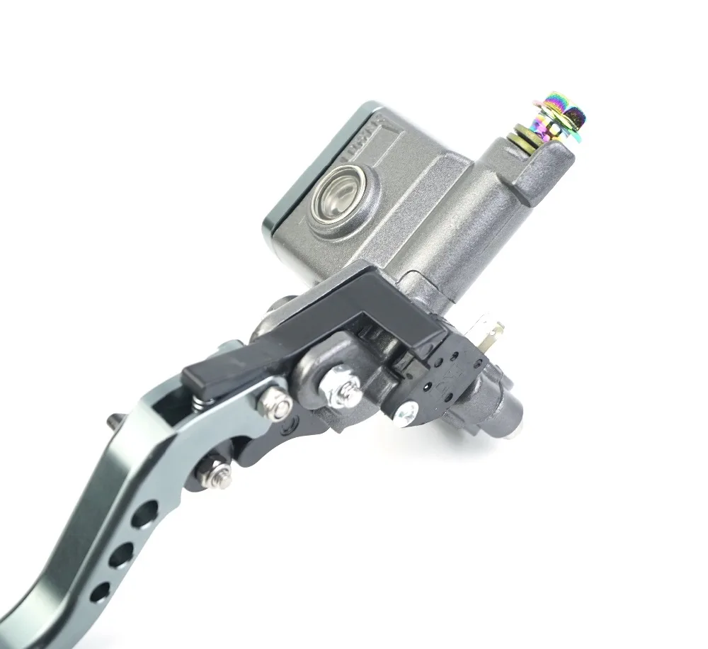 -As alavancas são feitas de alumínio e anodizadas na mesma cor que a tampa do reservatório de fluido de freio.