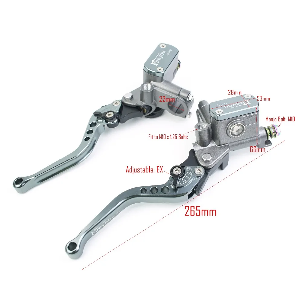 -Padrão universal 7/8 ” (22mm) cilindro mestre do freio dianteiro hidráulico duplo & poleiro da embreagem com alavancas ajustáveis e kit completo do reservatório fluido.